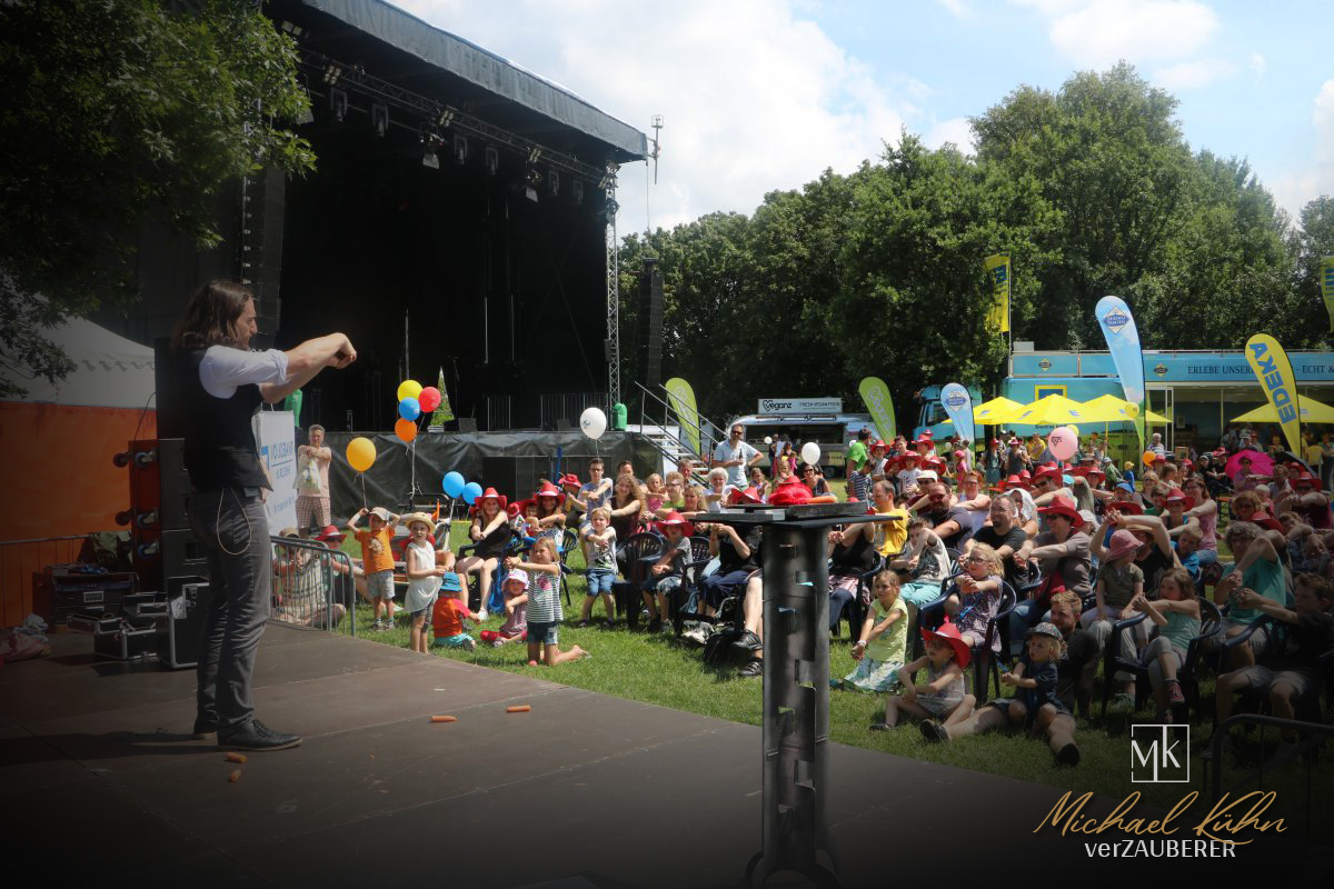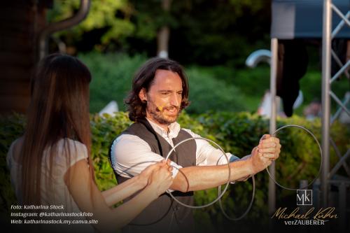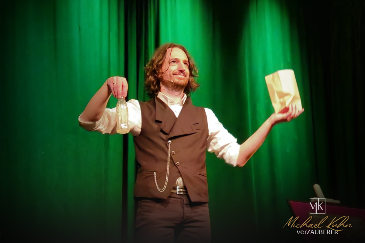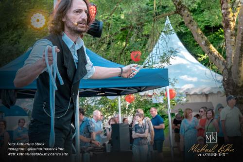 Eine Bühne ist übrigens keine Voraussetzung. Viel lieber ist es mir sogar, wenn es diese „Kluft“ gar nicht gibt und ich mit den Gästen auf einer Ebene kommunizieren kann – im wahrsten Sinne des Wortes. Doch wie auch immer die Location sich darstellt – meine Zaubershow kann unter fast allen Bedingungen zeigen! (Das kann ich behaupten, weil ich sie schon unter fast allen Bedingungen gezeigt habe…) Ideal für Geburtstage, Hochzeiten und Firmenfeiern.